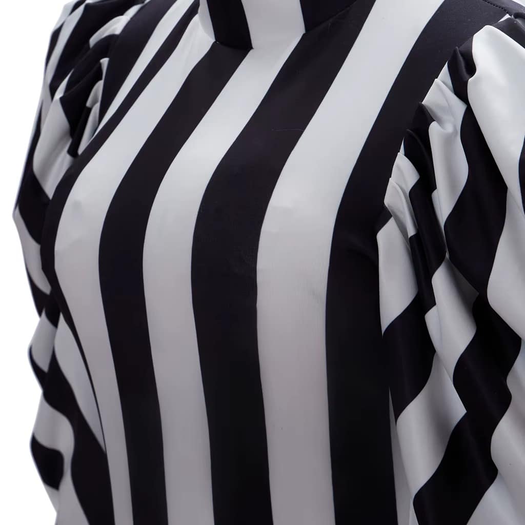 Disponible de la taille XS à la taille 3XL, le body à rayures noires et blanches s’adapte à de nombreuses morphologies, ce qui le rend idéal pour les artistes, animateurs ou particuliers. Il convient parfaitement pour Halloween, anniversaires, soirées, spectacles et événements festifs, offrant une solution durable, pratique et visuellement forte pour composer un costume de cirque ou de scène efficace.