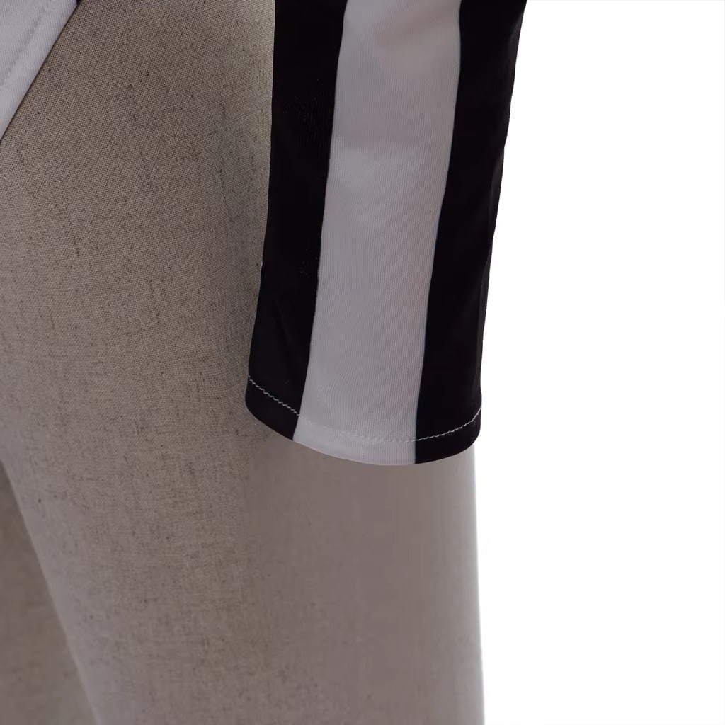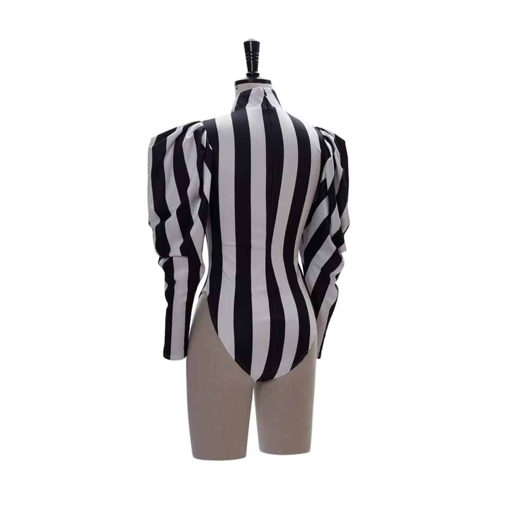 Le body à rayures noires et blanches apporte un impact visuel immédiat grâce à son contraste graphique fort, parfaitement adapté aux spectacles, animations et univers du cirque. Son style inspiré du costume victorien, avec des manches légèrement amples et un col ajusté, permet de créer un personnage élégant, original et facilement identifiable sur scène. Il transforme une tenue en véritable costume sans nécessiter d’accessoires complexes.