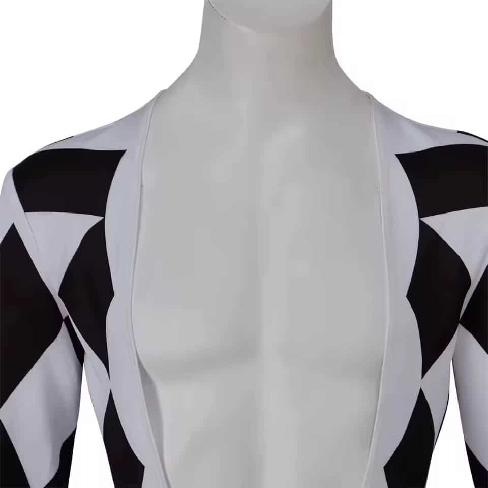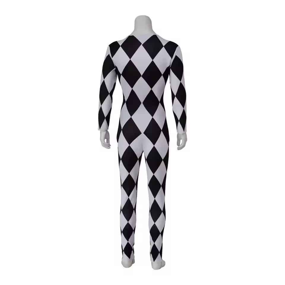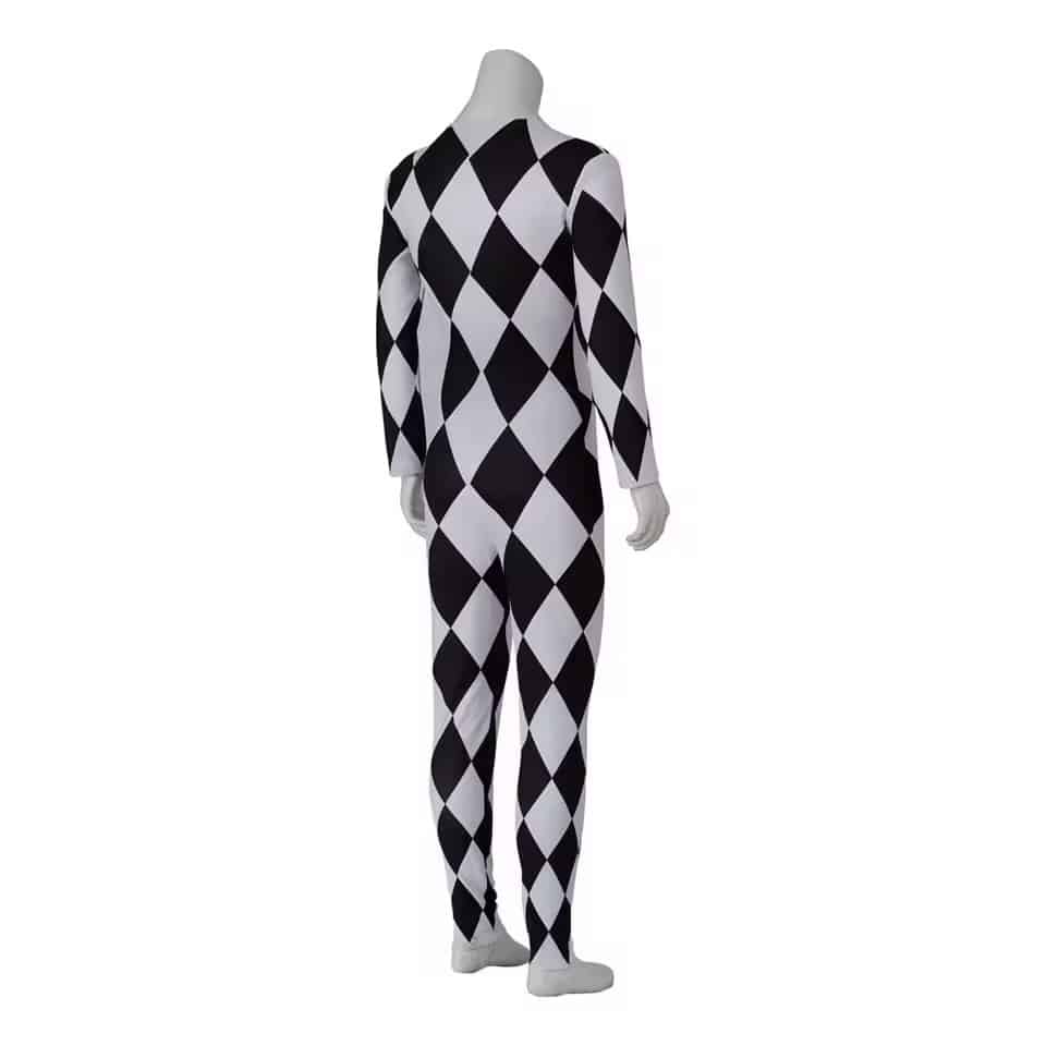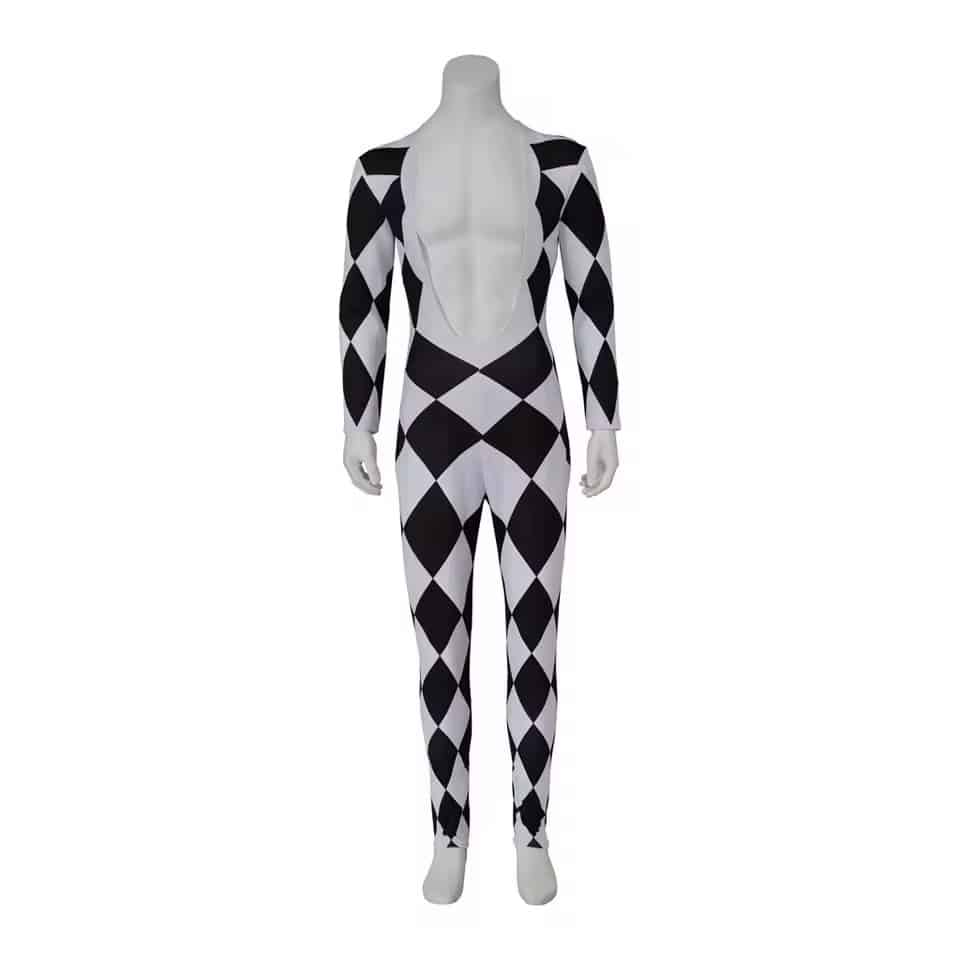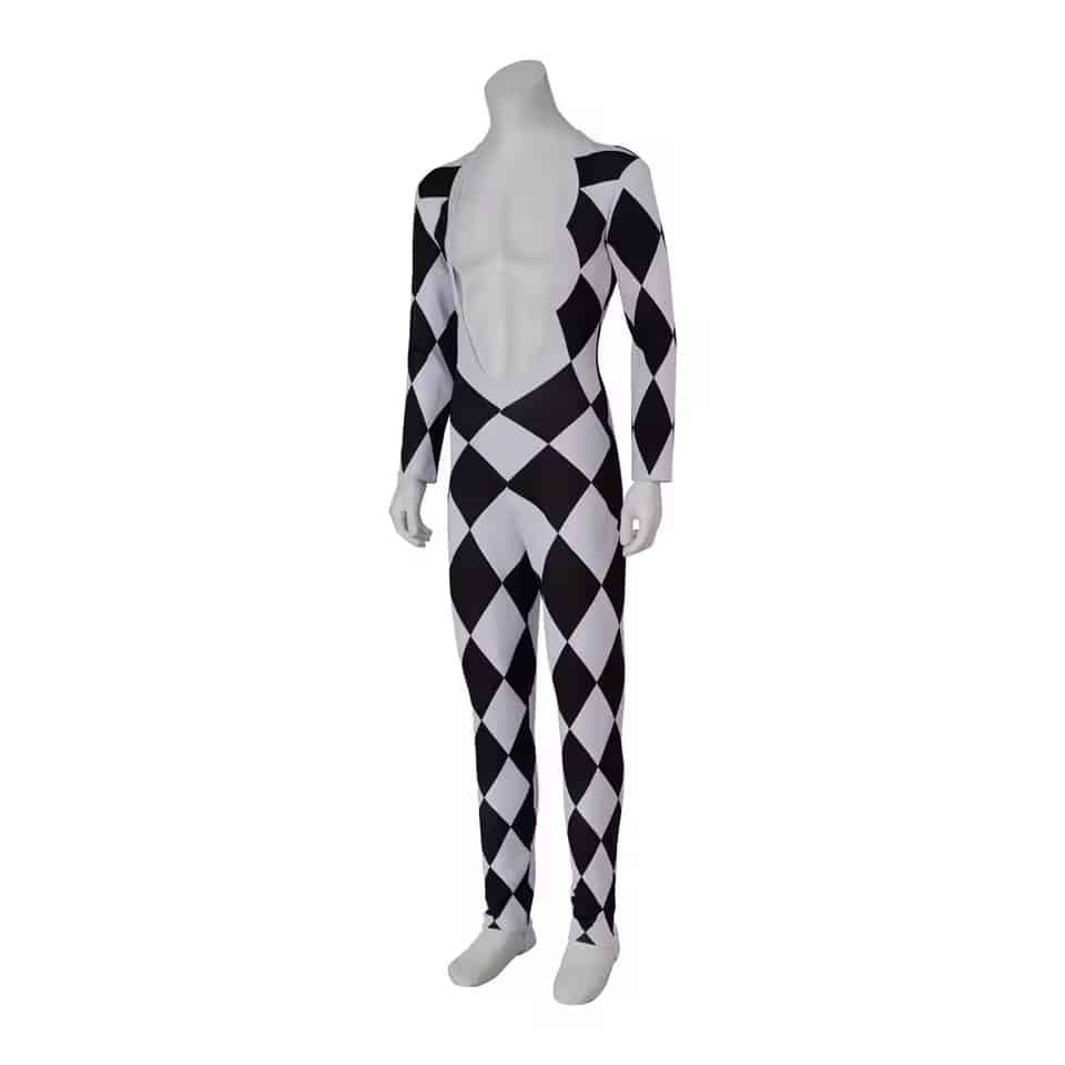Fabriquée en polyester résistant, cette combinaison supporte les mouvements répétés, la danse et les déplacements sur scène sans se déformer. La matière est également respirante, ce qui améliore le confort même lors d’une utilisation prolongée sous des lumières ou dans une ambiance festive. La combinaison de Freddie Mercury à damier noir et blanc permet de bouger librement, un vrai avantage pour les performances, animations ou spectacles de cirque.