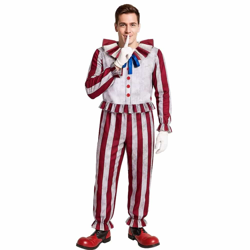 Dispo toutes les tailles pour homme, ce costume vous laisse choisir la coupe qui tombe bien, sans compromis. Le style vintage rayé rouge et blanc attire l’œil dès l’arrivée, avec un look clown rétro qui marche autant en scène qu’en soirée. La tenue est en 1 pièce facile à enfiler, et la fermeture éclair à l’arrière aide à se changer vite, même quand vous avez peu de temps avant de sortir.