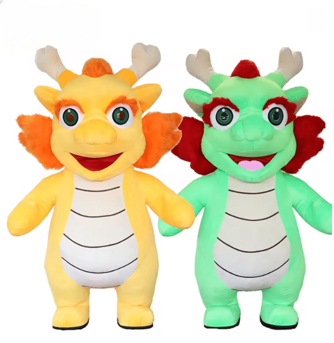 Le costume gonflable bébé dragon attire immédiatement l’attention avec sa silhouette ronde et ses ailes amusantes, parfait pour créer une ambiance féerique et originale. Disponible en coloris jaune ou vert, il permet de choisir le style qui correspond le mieux à votre événement. Grâce au souffleur intégré, la forme reste bien gonflée et stable pendant toute l’animation, garantissant un rendu visuel constant et impactant.