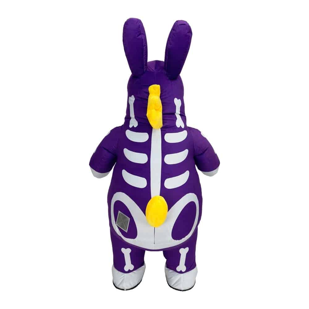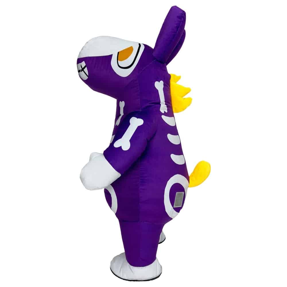 Le costume gonflable chien fantôme attire immédiatement l’attention avec son style original, sa couleur violette et ses motifs de squelette, parfaits pour créer une ambiance marquante lors d’Halloween ou d’événements à thème. Sa forme volumineuse permet de se démarquer facilement, tout en apportant une touche à la fois amusante et légèrement effrayante.