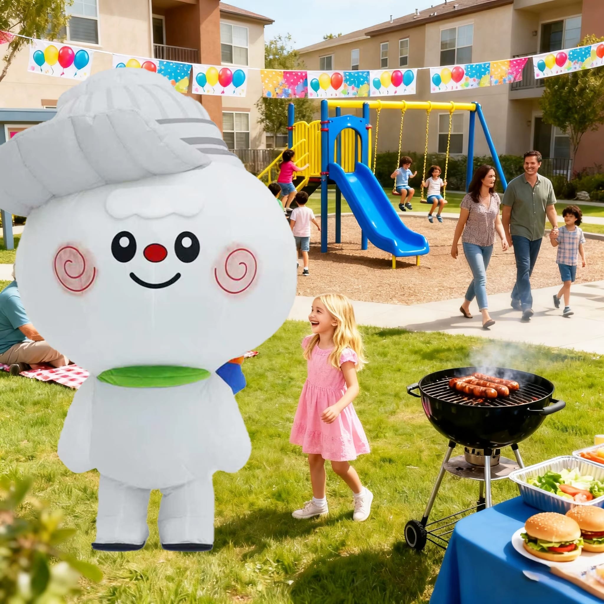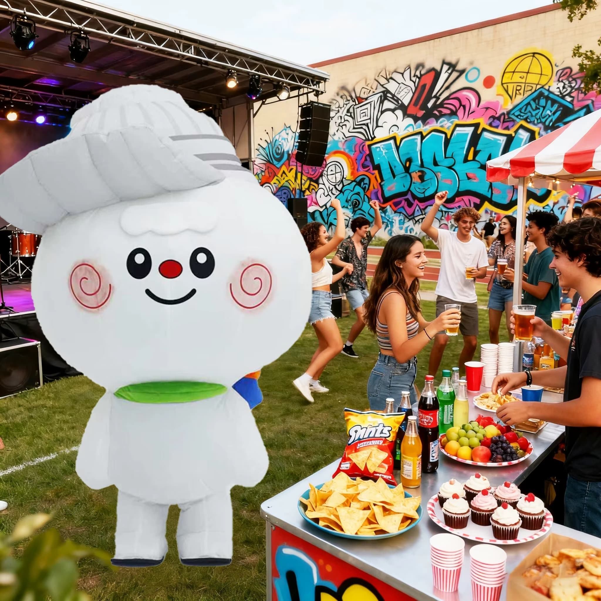 Cette mascotte mesure environ 2 mètres de haut et convient aux personnes mesurant entre 1,50 m et 1,70 m, pour un rendu proportionné et confortable. Idéal pour anniversaires, soirées à thème, EVJF, EVG ou fêtes privées, le costume gonflable bonhomme blanc à grosse tête ronde offre un impact visuel immédiat et mémorable.