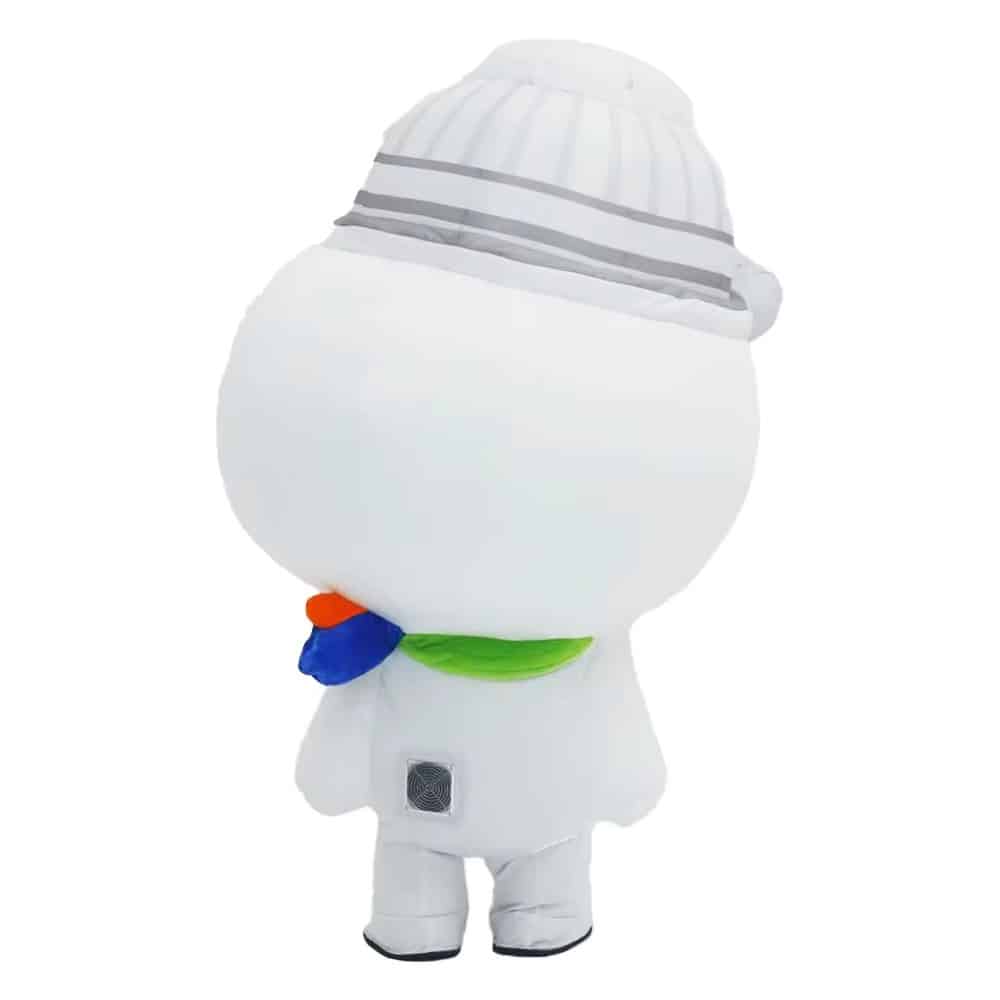 Le costume gonflable bonhomme blanc à grosse tête ronde attire immédiatement l’attention avec sa silhouette amusante et sa casquette assortie qui renforce son style décalé. Grâce au souffleur intégré, la forme reste bien gonflée et stable pendant toute la durée de l’événement, ce qui garantit un rendu visuel fort et constant, même en mouvement.