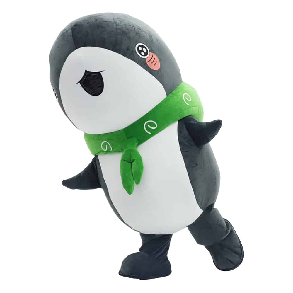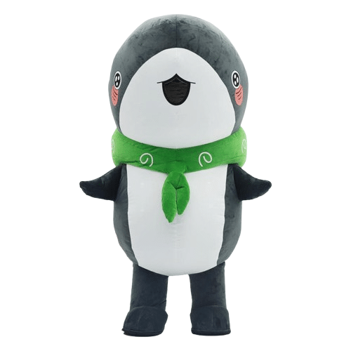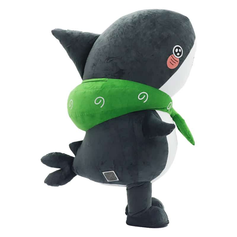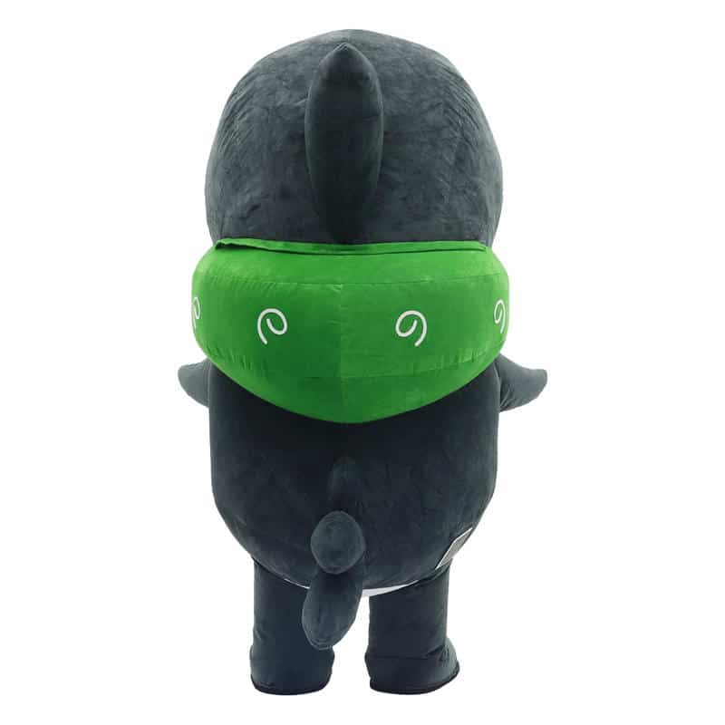 Le costume gonflable mascotte requin attire immédiatement l’attention avec son design gris et blanc réaliste et son bandana vert autour du cou qui lui donne un style dynamique et sympathique. Idéal pour les parcs aquatiques, animations sur le thème des animaux ou événements festifs, il permet de créer une présence visuelle forte et mémorable dès votre arrivée.