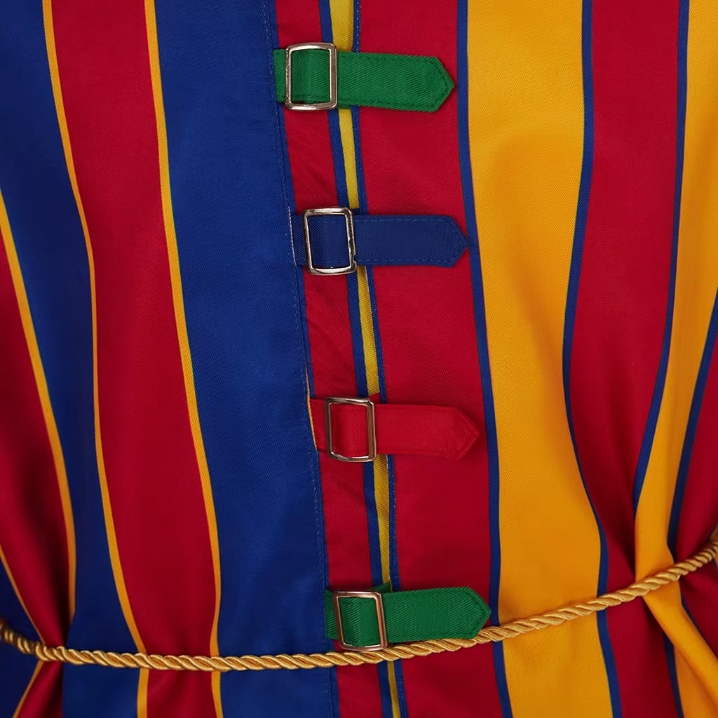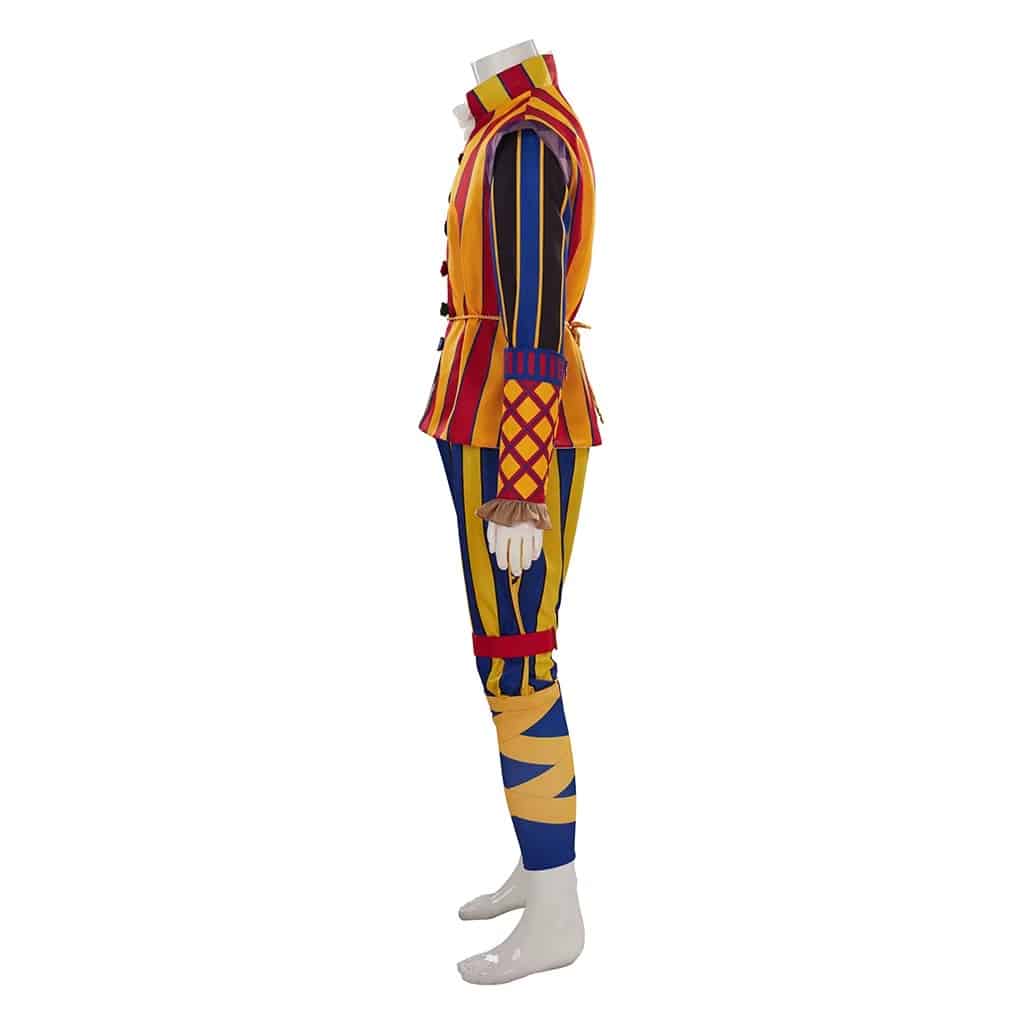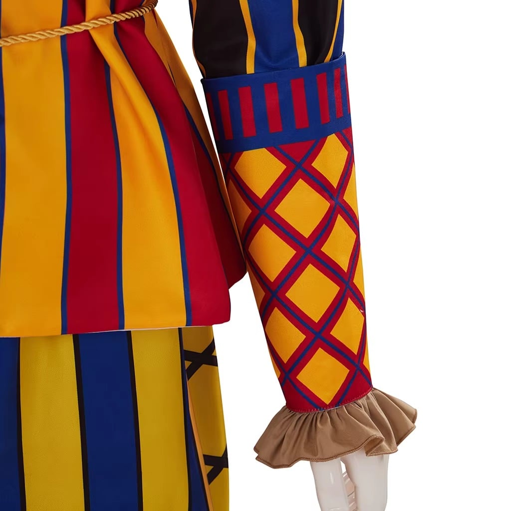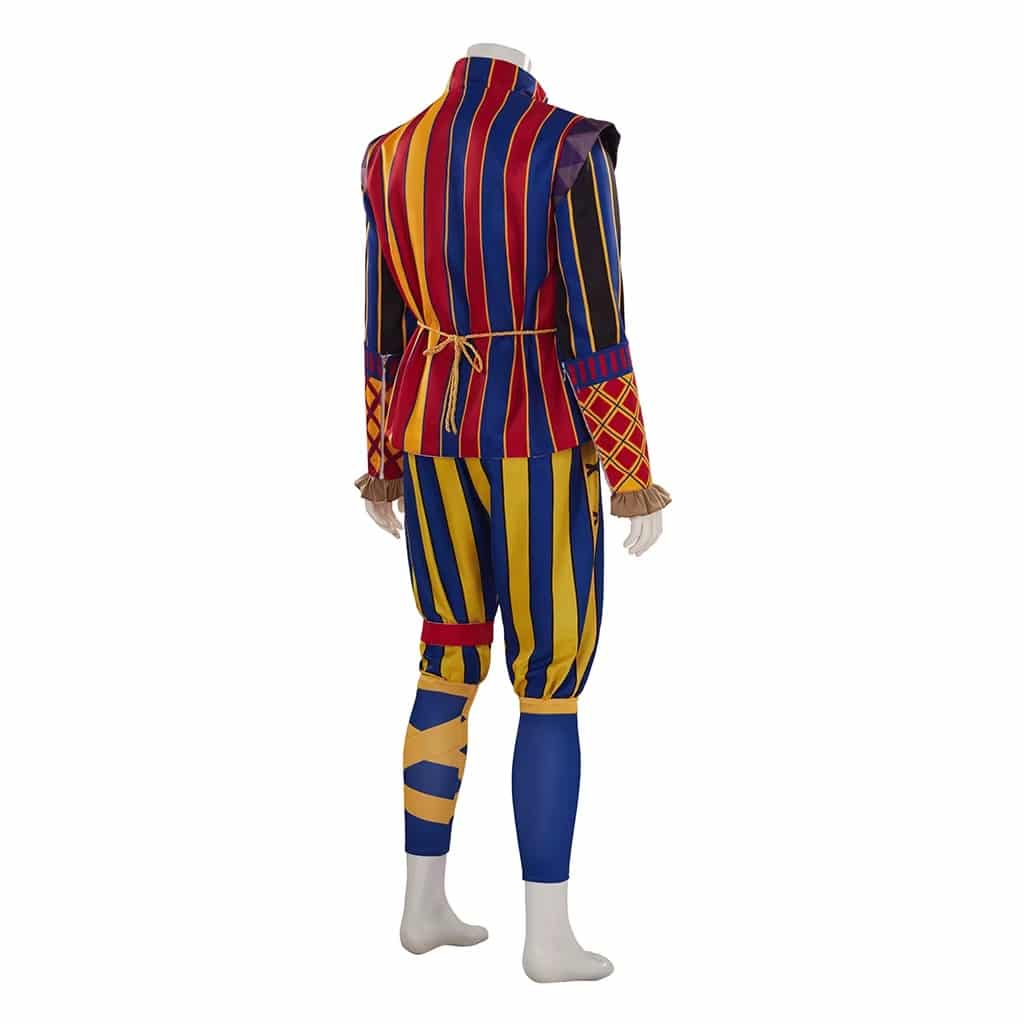 Le costume de ménestrel pour homme offre une tenue complète prête à porter, avec un haut et un pantalon assortis pour composer rapidement un personnage médiéval crédible. Les rayures colorées bleu, jaune, rouge et bleu créent un rendu visuel fort qui capte l’attention sur scène ou en animation. Ce style expressif fonctionne aussi bien pour le cirque, le jonglage que pour des événements à thème médiéval ou festif.