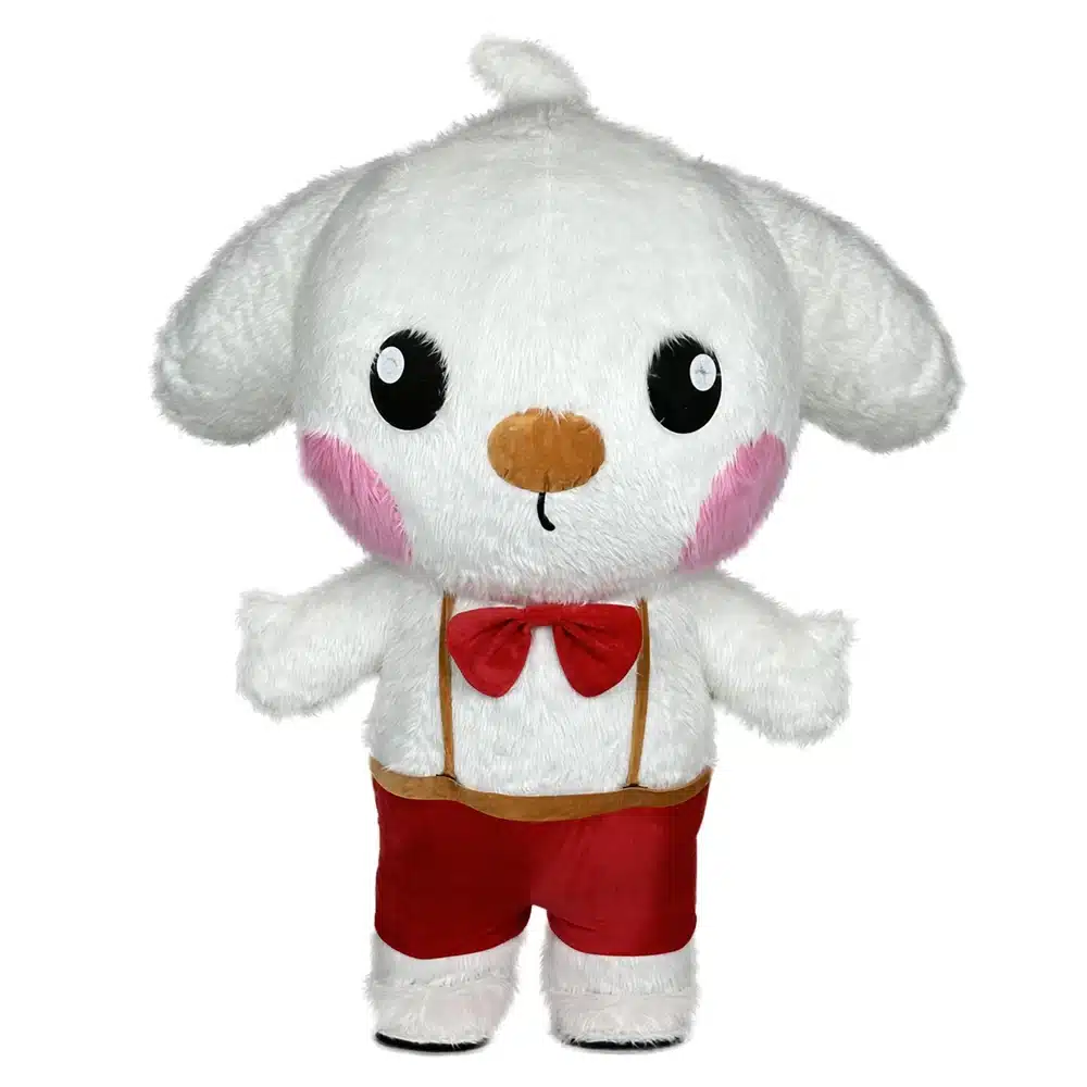 Un design mignon et attendrissant qui représente un chiot blanc avec un aspect peluche tout doux. Il porte un nœud papillon rouge, un short à bretelles assorties, des joues roses et des yeux tendres qui renforcent son allure sympathique et câline.