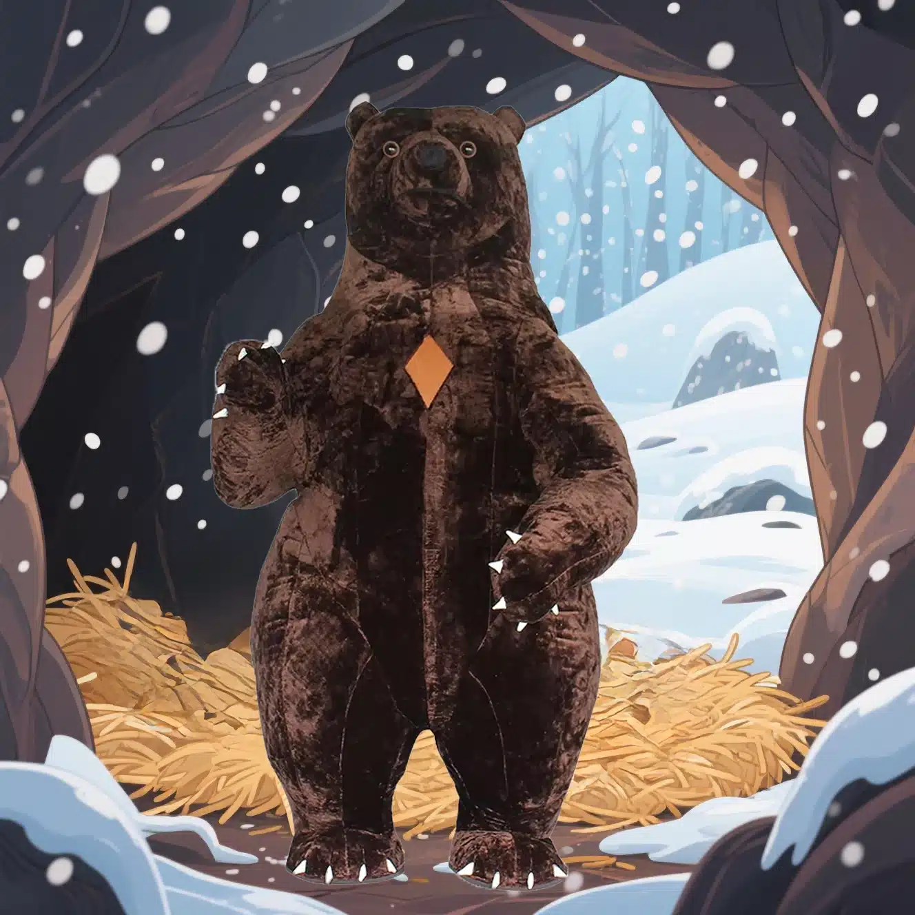 Un design réaliste et attendrissant représente un ours marron à l’effet peluche doux. Cette apparence naturelle et chaleureuse donne un rendu professionnel et séduit petits et grands lors de toutes vos animations.