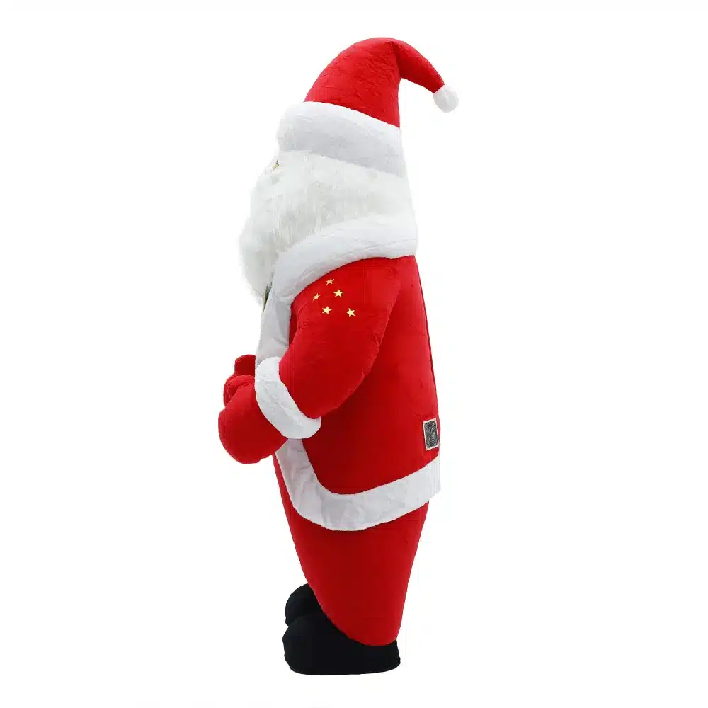La mascotte père noël existe en deux tailles pour convenir à plus de morphologies : 2 m pour les personnes mesurant 150 à 170 cm, et 2,6 m pour celles de 160 à 185 cm. Avec son design de Père Noël ultra reconnaissable et ses volumes généreux, la mascotte père noël attire le regard et booste l’animation dès les premières minutes.