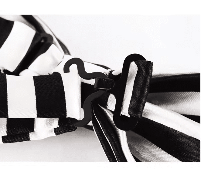Le nœud papillon rayé noir et blanc est conçu en polyester de qualité, un matériau à la fois léger et résistant, agréable à porter même pendant de longues heures. Il conserve bien sa forme et ses couleurs, ce qui garantit un rendu propre et soigné à chaque utilisation. Son tissu ne gratte pas et reste confortable autour du cou, un vrai plus pour les spectacles ou animations qui demandent mobilité et aisance.
