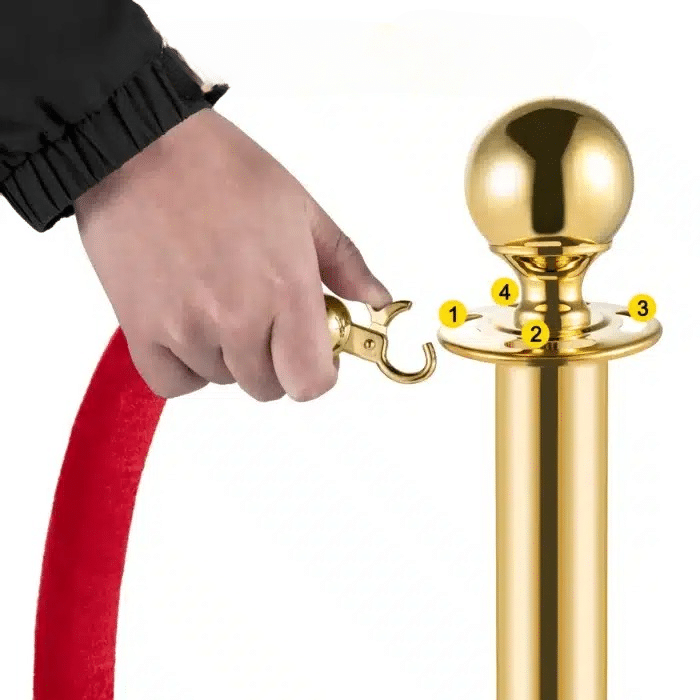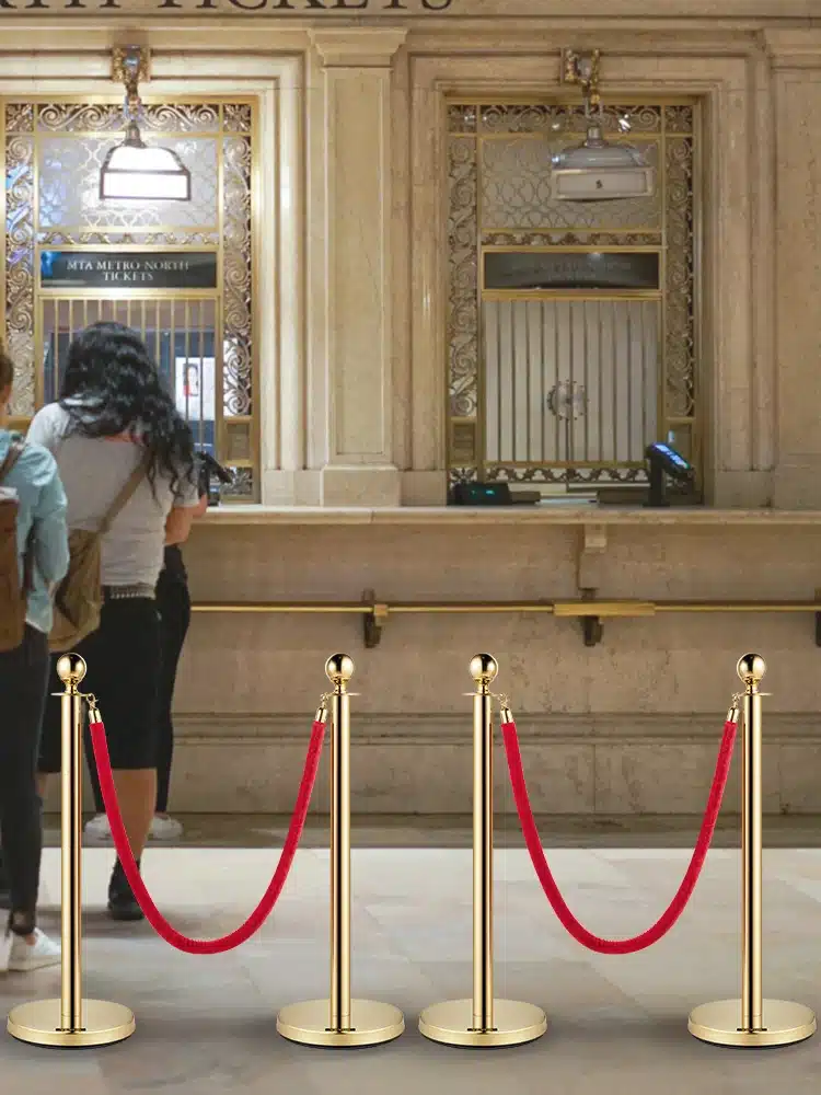 Poteaux de guidage spectacle (lot de 4) apporte une touche chic et délimite clairement les espaces dès l’installation. L’ensemble comprend 4 poteaux dorés et 2 cordes rouges en velours de 1,50 m pour créer un passage net et organiser les files sans stress.