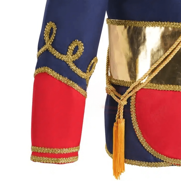Uniforme casse-noisette homme met en avant le détail qui attire le regard : une veste avec de beaux ornements dorés et de solides épaulettes pour une présence scénique marquée. La silhouette gagne en tenue, le personnage s’impose au premier coup d’œil, que vous jouiez le chef de troupe ou le soldat du ballet.